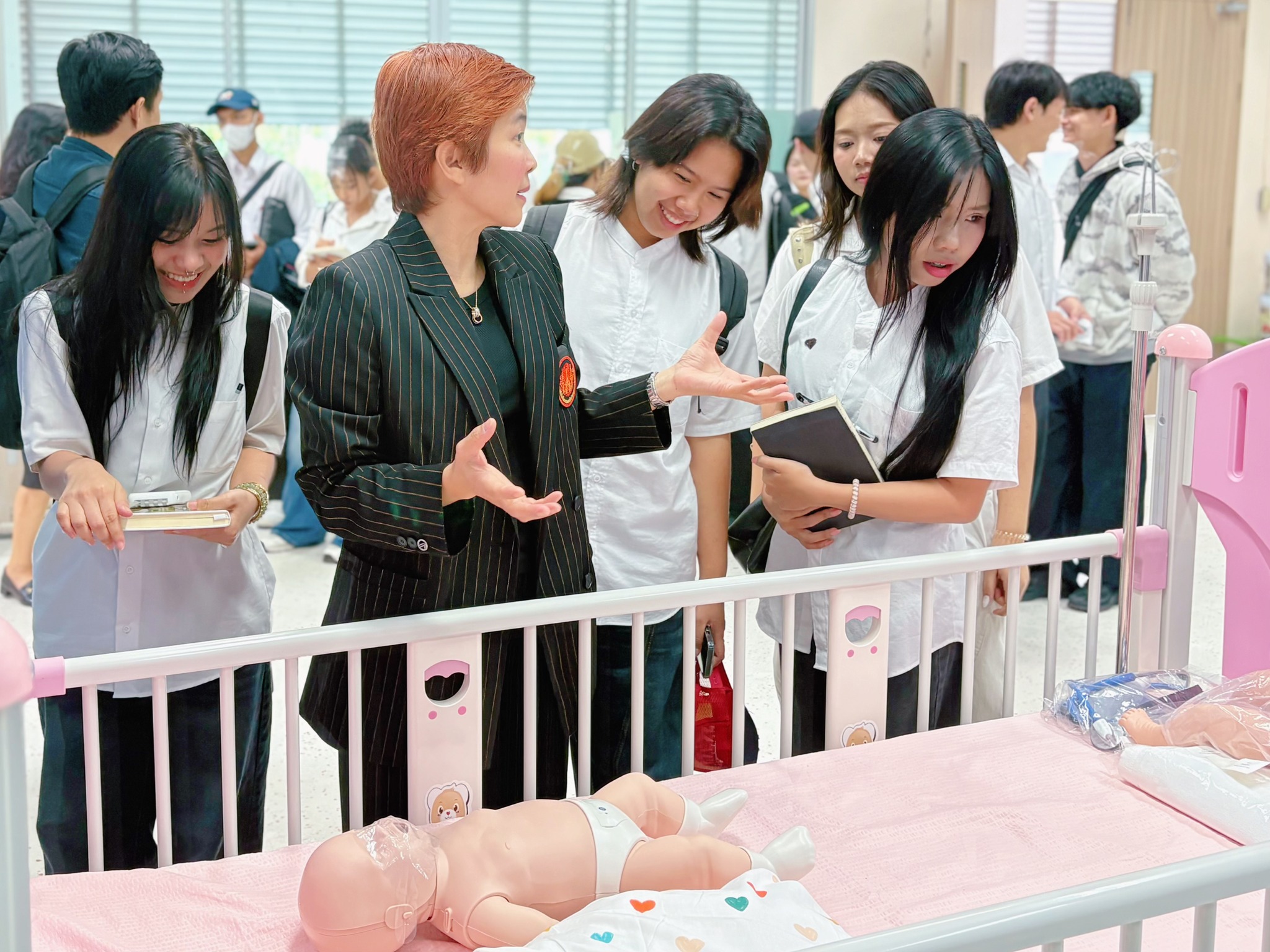 บรรยากาศเป็นไปอย่างอบอุ่นและเป็นกันเอง นักศึกษาได้เยี่ยมชมห้องปฏิบัติการและแหล่งเรียนรู้ด้านเทคโนโลยี ได้แก่ ห้อง Anatomy, Sim Man, Sim Baby และ Learning Resource Center (LRC) พร้อมร่วมกิจกรรมเวิร์กช็อปกับคณาจารย์คณะพยาบาลศาสตร์ สจล. ซึ่งช่วยเสริมสร้างประสบการณ์การเรียนรู้และเปิดมุมมองใหม่ผ่านการแลกเปลี่ยนระหว่างศาสตร์อย่างสร้างสรรค์ 🤍