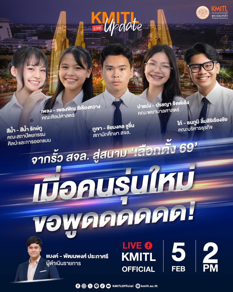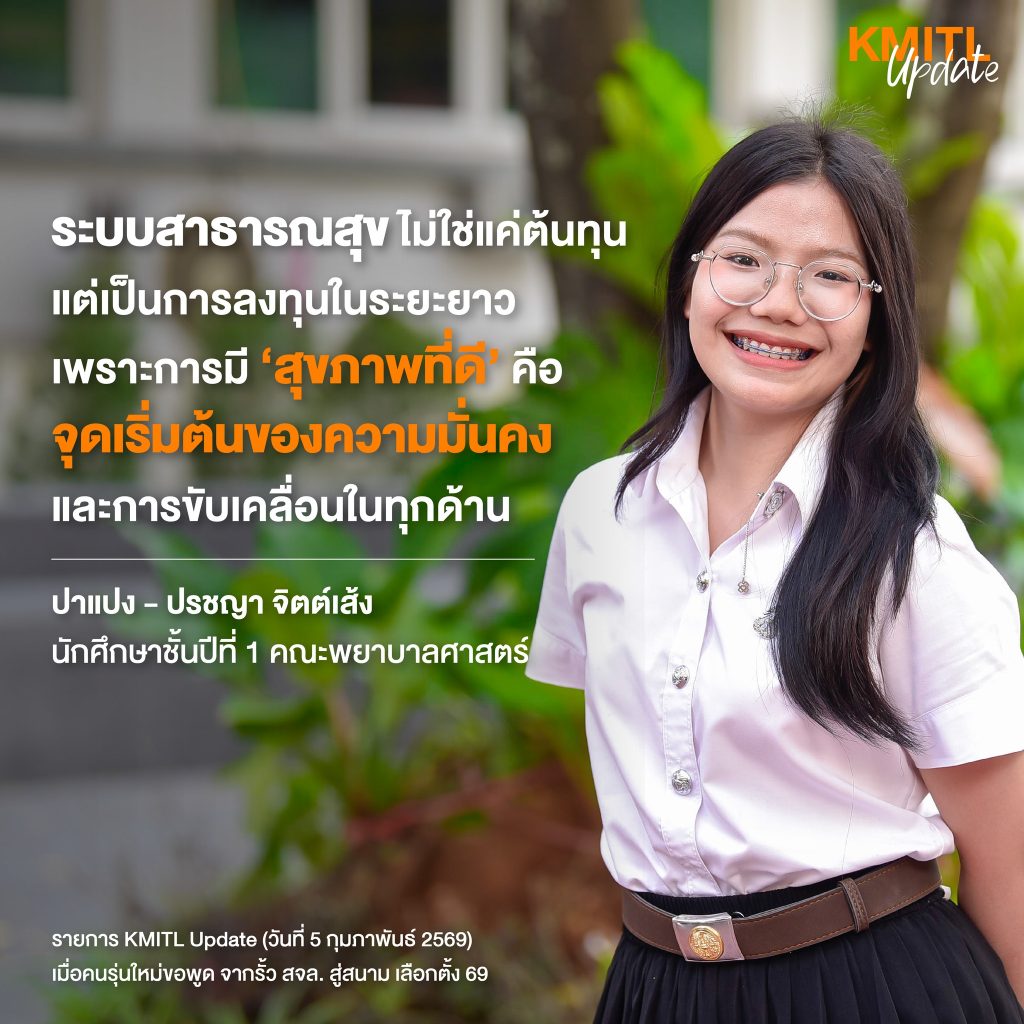 ข่าวประชาสัมพันธ์รายการ #KMITLUpdate เมื่อคนรุ่นใหม่ (ปาแปง ปี 1 พยบ.) ขอพูด จากรั้ว สจล. สู่สนามเลือกตั้ง69 ข่าวประชาสัมพันธ์ / By natsima ระบบสาธารณสุข ไม่ใ