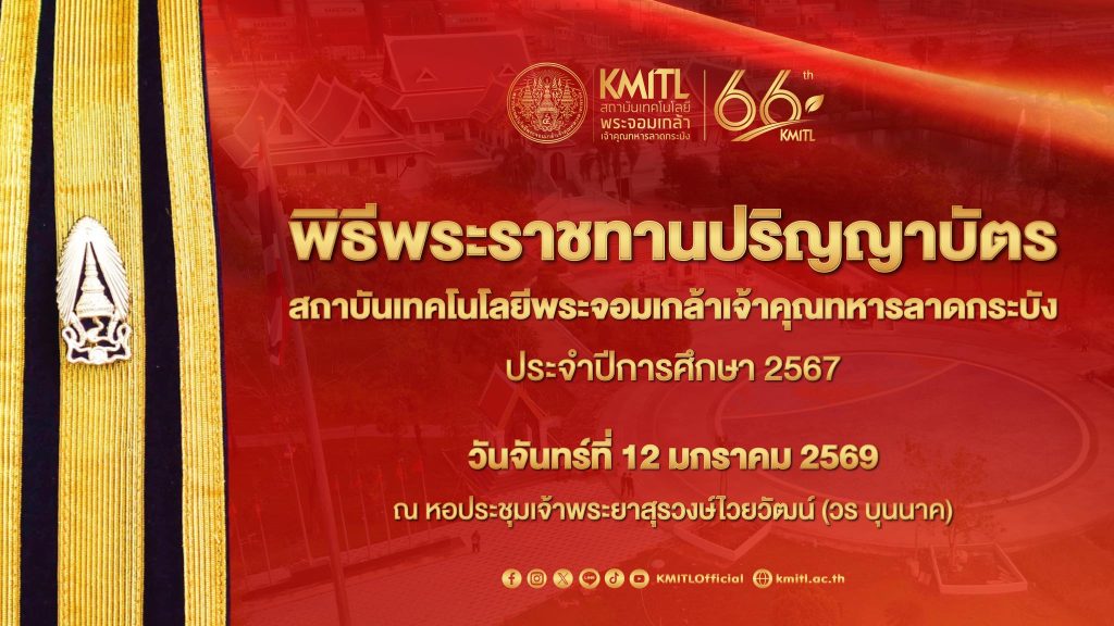 ข่าวประชาสัมพันธ์เทปบันทึกภาพ พิธีพระราชทานปริญญาบัตร สจล. ประจำปีการศึกษา 2567 วันจันทร์ที่ 12 มกราคม 2569 ข่าวประชาสัมพันธ์ / By natsima เทปบันทึกภาพ พิธีพระ