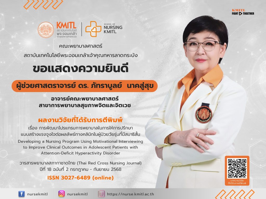 ขอแสดงความยินดีคณะพยาบาลศาสตร์ สจล. ขอแสดงความยินดีกับ ผศ. ดร. ภัทราบูลย์ นาคสู่สุข ขอแสดงความยินดี / By natsima คณะพยาบาลศาสตร์ สจล.